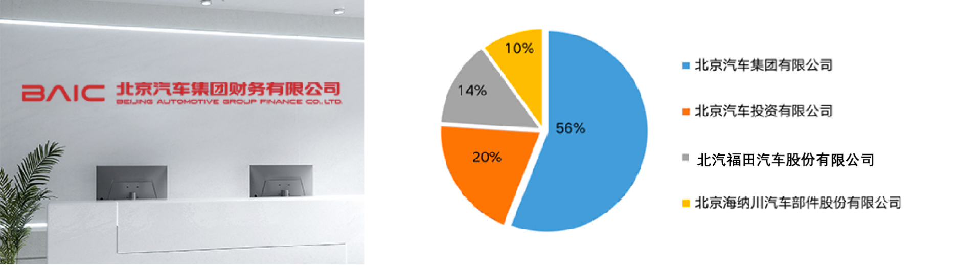 北京汽車(chē)集團(tuán)財(cái)務(wù)有限公司(以下簡(jiǎn)稱“北汽財(cái)務(wù)公司”)是2011年10月經(jīng)中國(guó)銀行業(yè)監(jiān)督管理委員會(huì)批準(zhǔn)成立的非銀行金融機(jī)構(gòu),是北京市屬國(guó)有企業(yè)中第一家申請(qǐng)新設(shè)的財(cái)務(wù)公司,由北京汽車(chē)集團(tuán)有限公司、北京汽車(chē)投資有限公司、北汽福田汽車(chē)股份有限公司和北京海納川汽車(chē)部件股份有限公司共4家股東單位發(fā)起設(shè)立,其中北京汽車(chē)集團(tuán)有限公司持股比例56%、北京汽車(chē)投資有限公司持股比例20%、北汽福田汽車(chē)股份有限公司持股比例14%、北京海納川汽車(chē)部件股份有限公司持股比例10%,注冊(cè)資本金50億元人民幣。